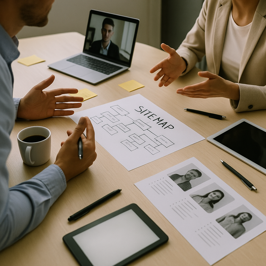 Kick-off mit Zielgruppen, Kernbotschaften und KPIs. Wir klären Use-Cases (Info, Service, Karriere).
